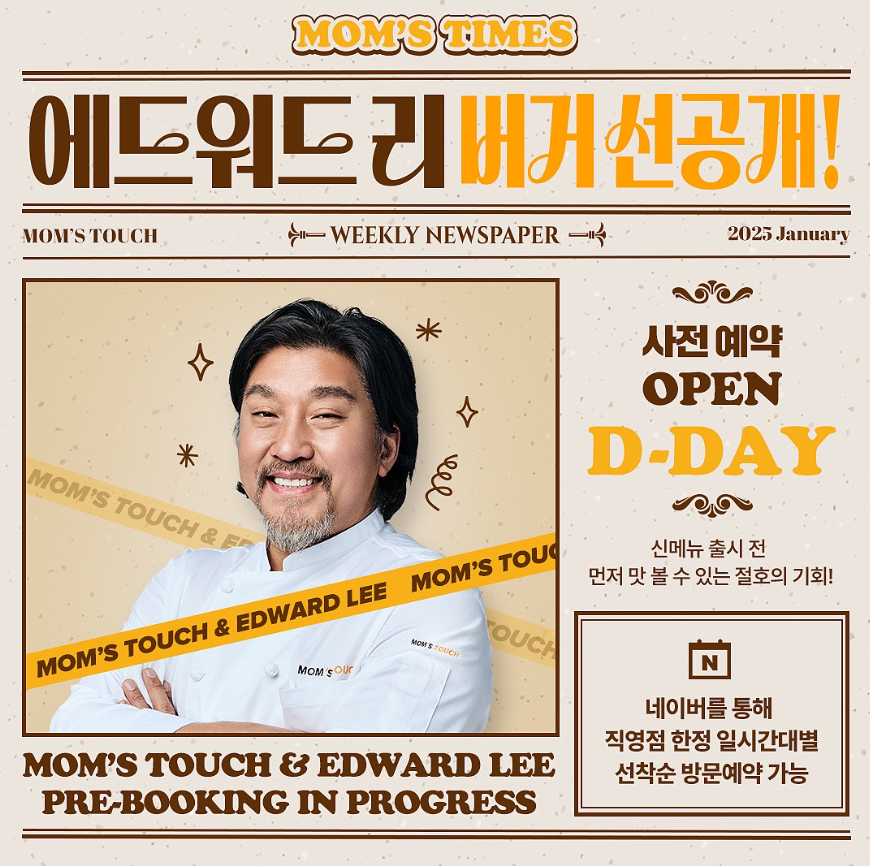 맘스터치 X 에드워드 리 사전예약 – 전설의 셰프가 만든 신메뉴를 가장 먼저 맛볼 기회!